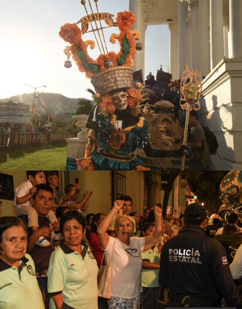 Durante el recorrido, miles de personas observaron y fueron testigos del gran trabajo y folclor en Oaxaca, luciendo también las y los participantes del concurso de catrinas.