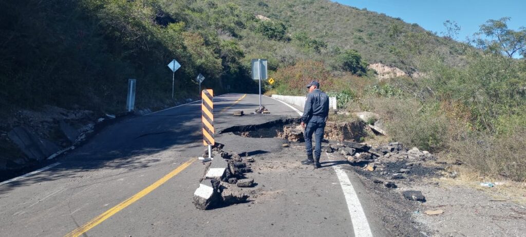 La Coordinación Estatal de Protección Civil y Gestión de Riesgos (CEPCyGR) exhorta a la población tomar sus precauciones debido al derrumbe y hundimiento que se presenta en el kilómetro 164+300 de la carretera que conduce al municipio de Santa Catarina Ixtepeji en la Sierra de Juárez.