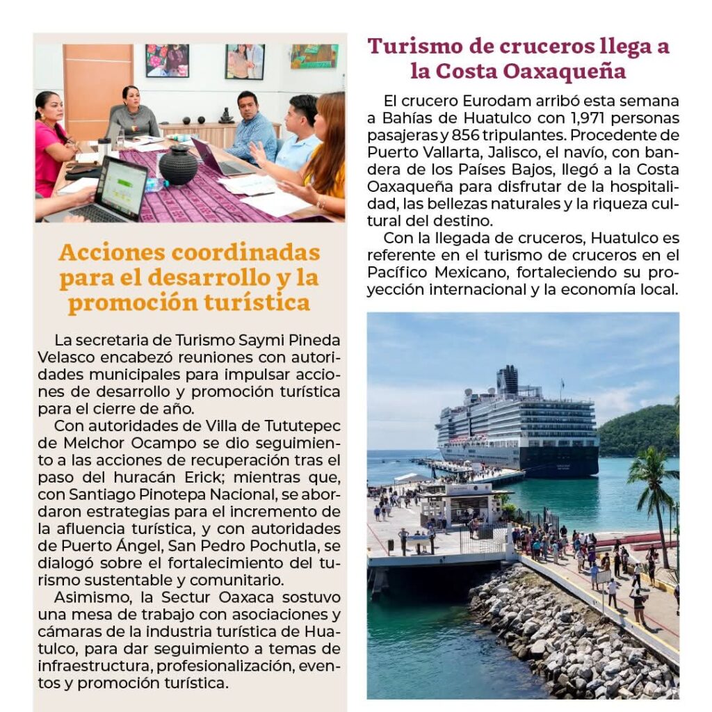 De la mano de la Secretaria de Turismo del Estado de Oaxaca, Saymi Pineda Velasco, la entidad avanza con una visión de crecimiento sostenible y con sentido humano, promoviendo festivales gastronómicos, tradiciones ancestrales y avances en el turismo internacional. 🌎