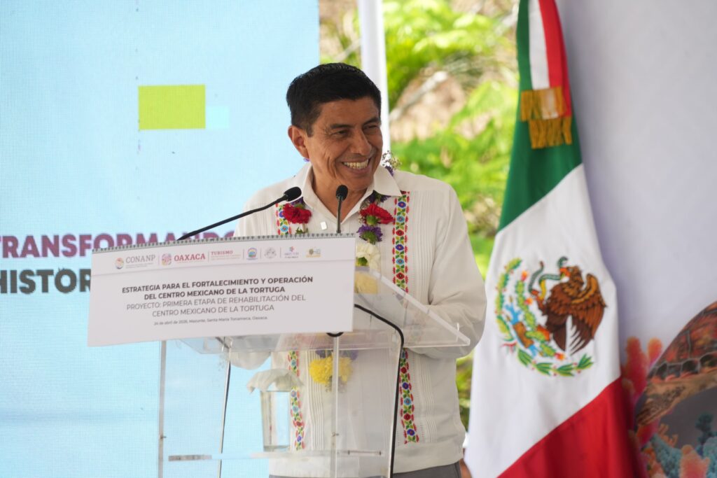 El Gobernador Salomón Jara Cruz encabezó la entrega de 20 millones de pesos para el fortalecimiento y operación de la primera etapa de rehabilitación del Centro Mexicano de la Tortuga en Mazunte, Santa María Tonameca, acción que brinda la continuidad de la preservación marina.