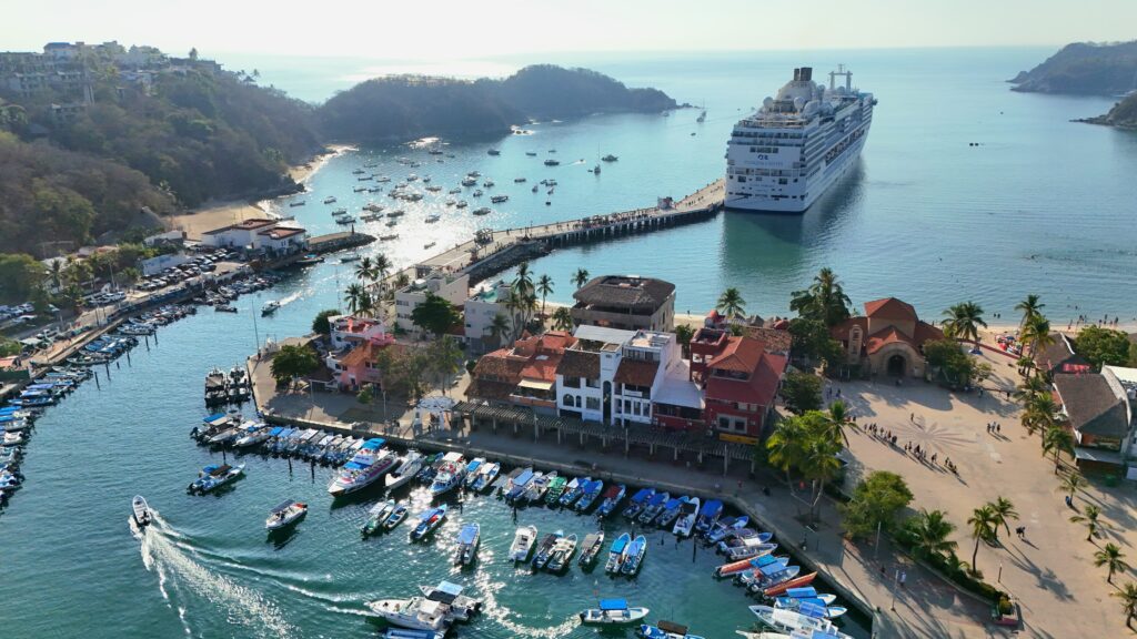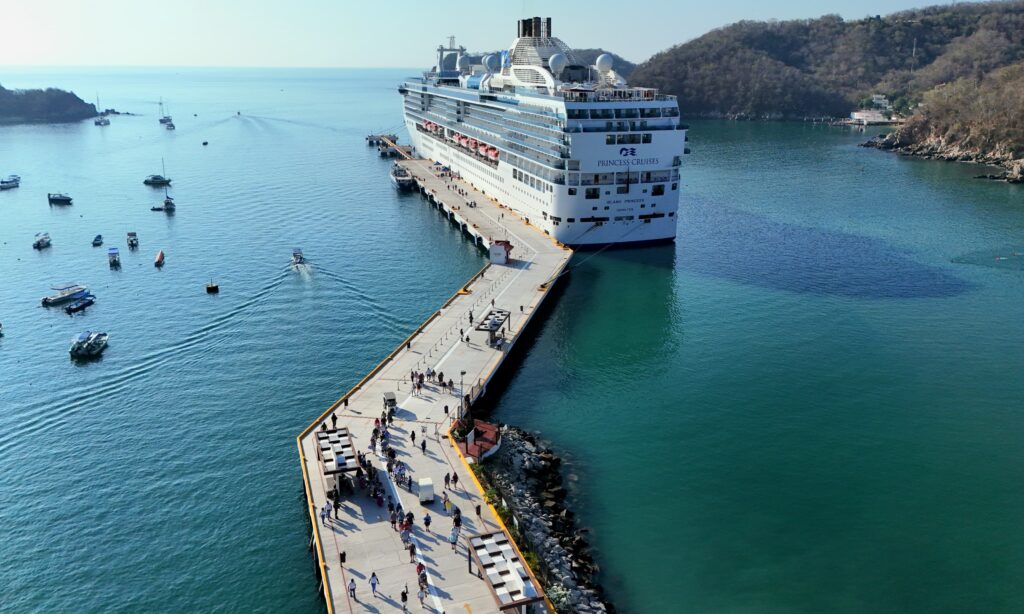 El puerto de Santa Cruz Huatulco recibió este día al crucero Island Princess, procedente de Puerto Vallarta, Jalisco, con un total de 2,124 pasajeras y pasajeros en tránsito, así como 886 tripulantes, consolidando así la actividad de cruceros en la costa oaxaqueña.