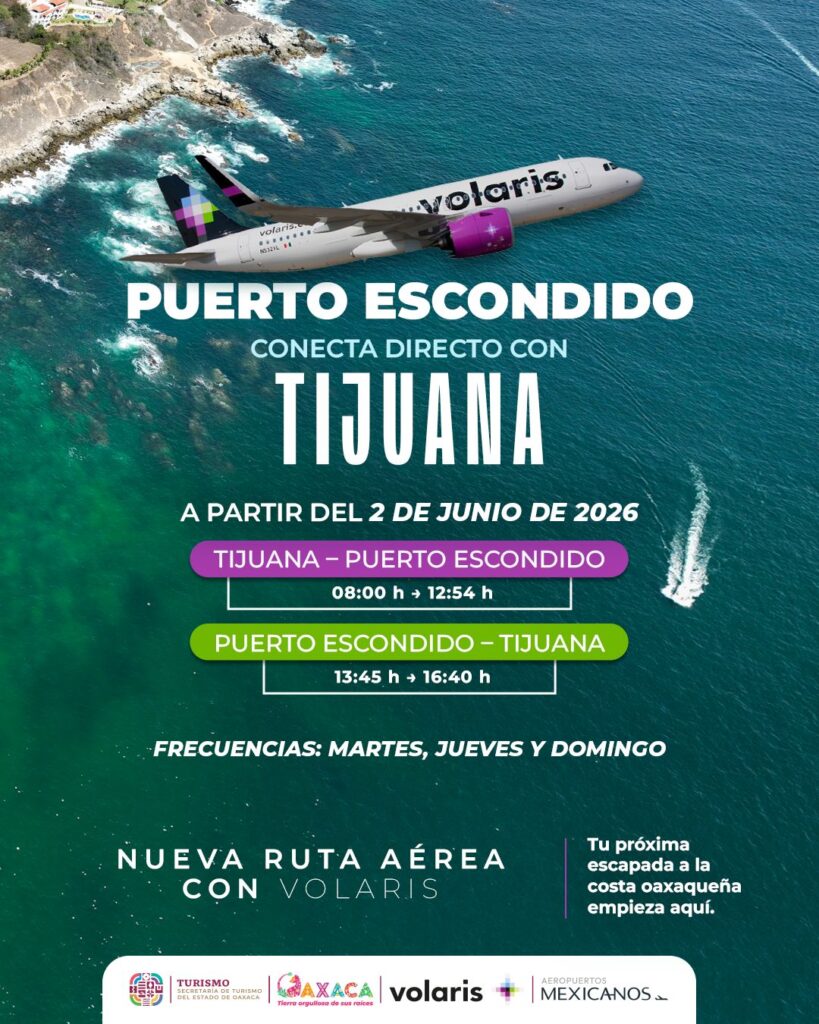 La Secretaría de Turismo del Estado (Sectur Oaxaca) que encabeza Saymi Pineda Velasco, informó que, a partir del próximo 2 de junio, iniciará operaciones el nuevo vuelo Tijuana – Puerto Escondido a través de la aerolínea Volaris.